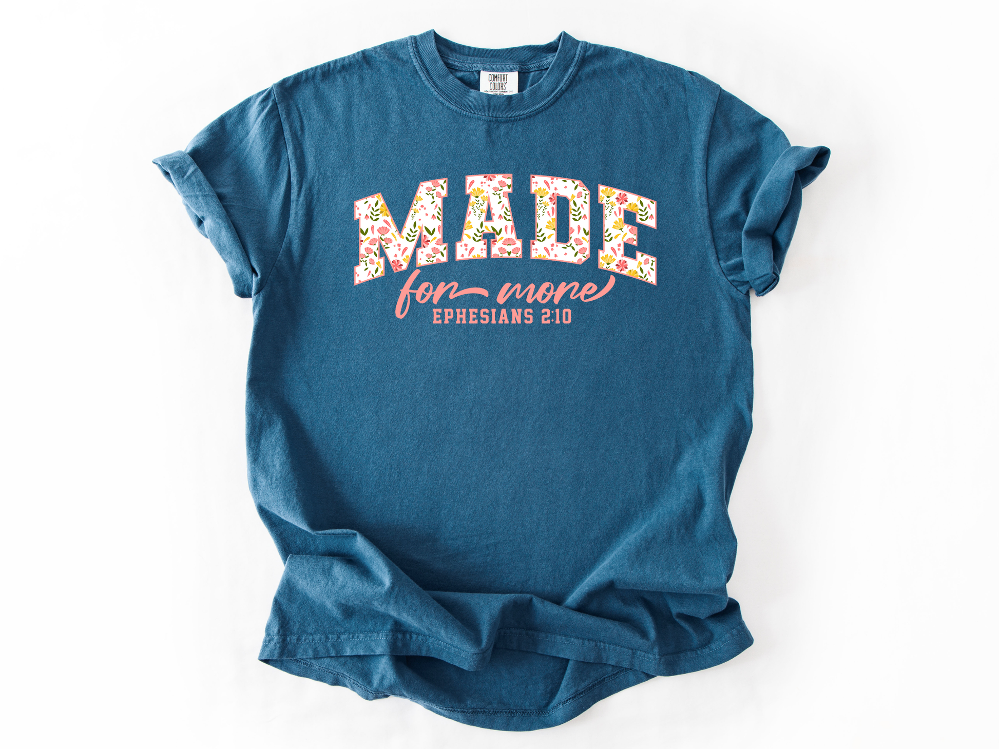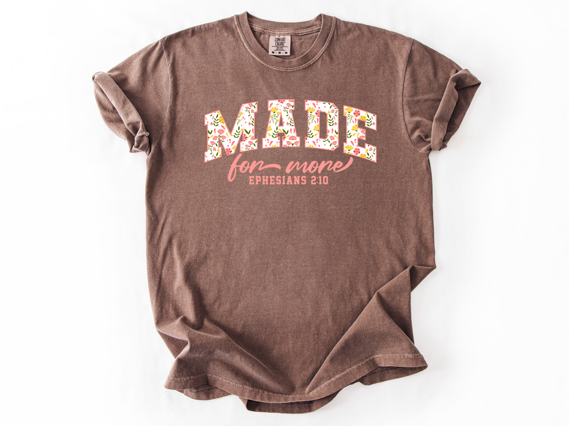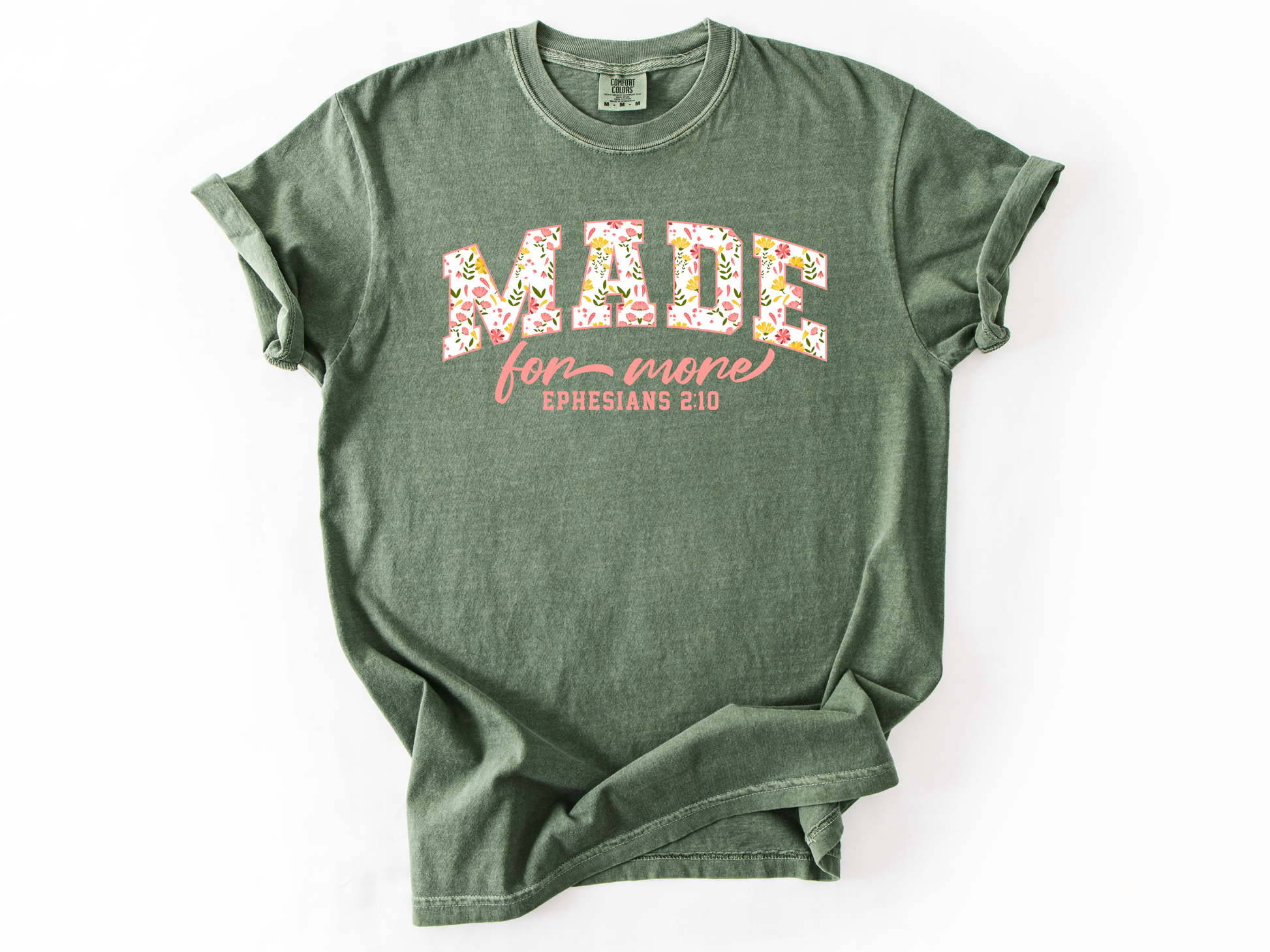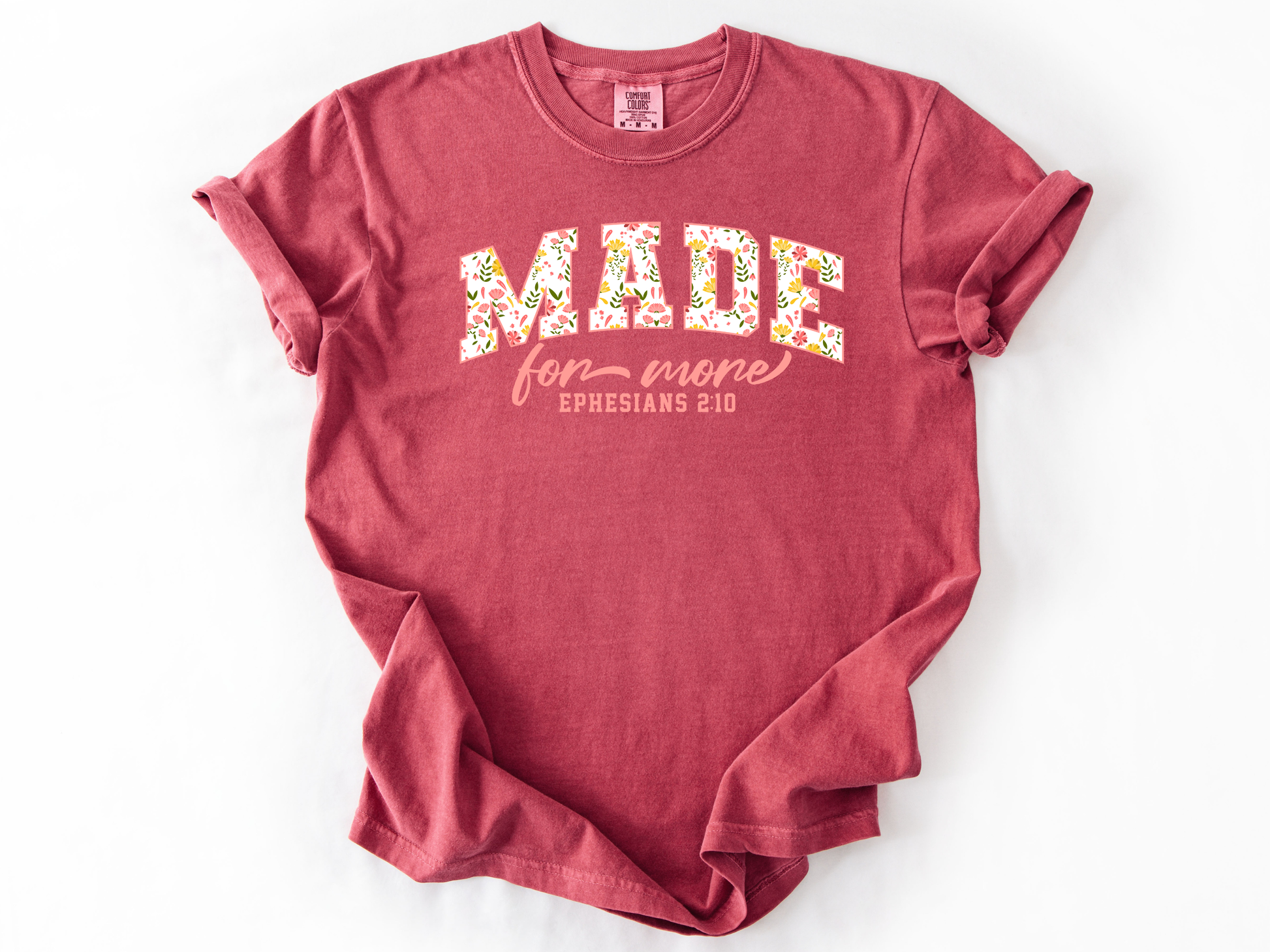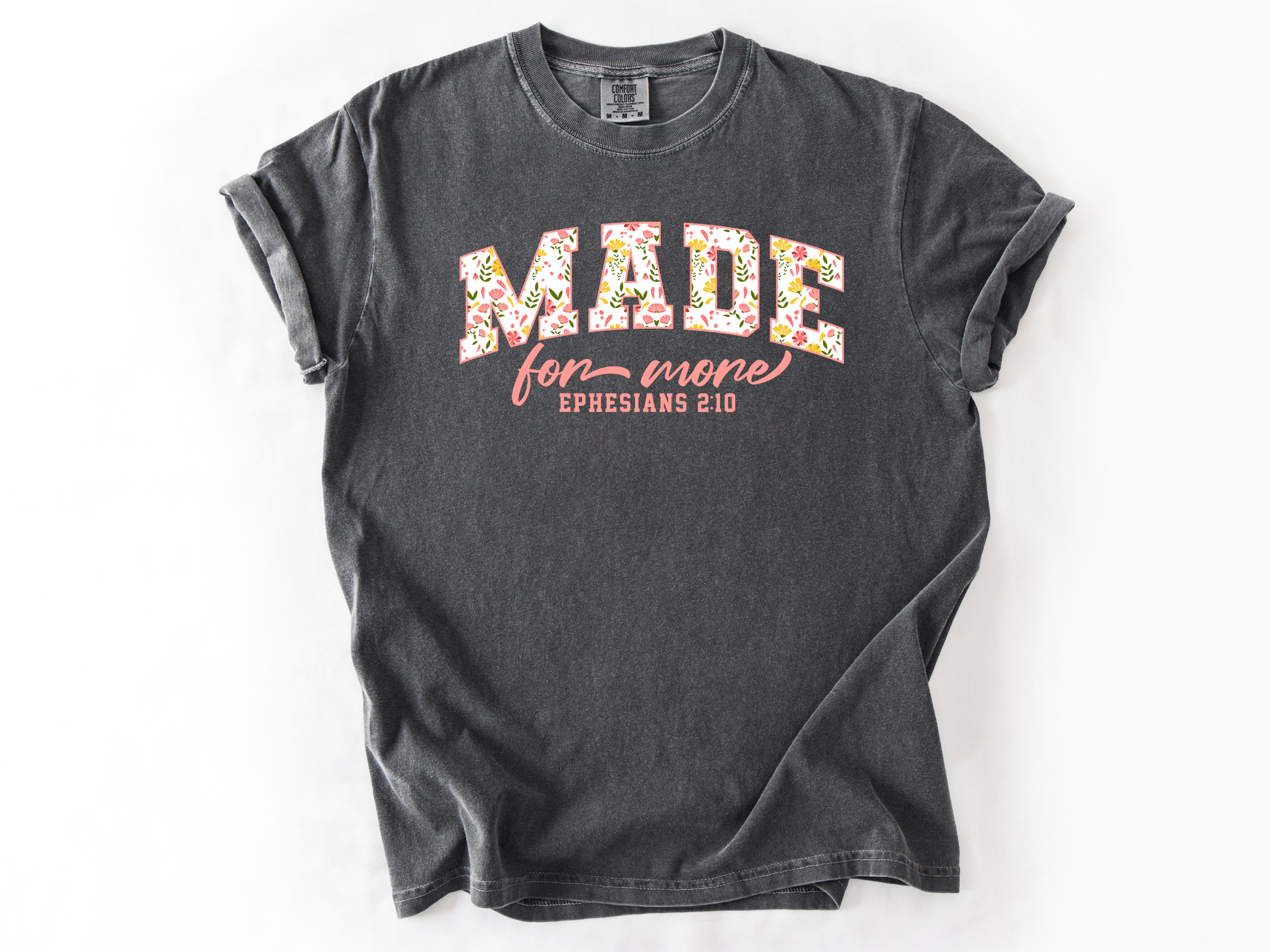 Spread faith and positivity with this “Made for More” Comfort Colors tee inspired by Ephesians 2:10.