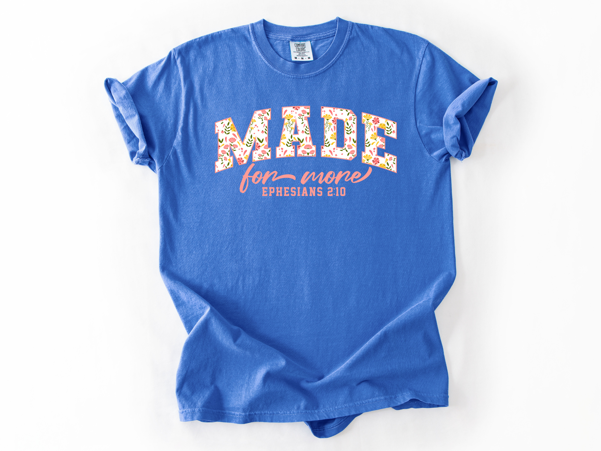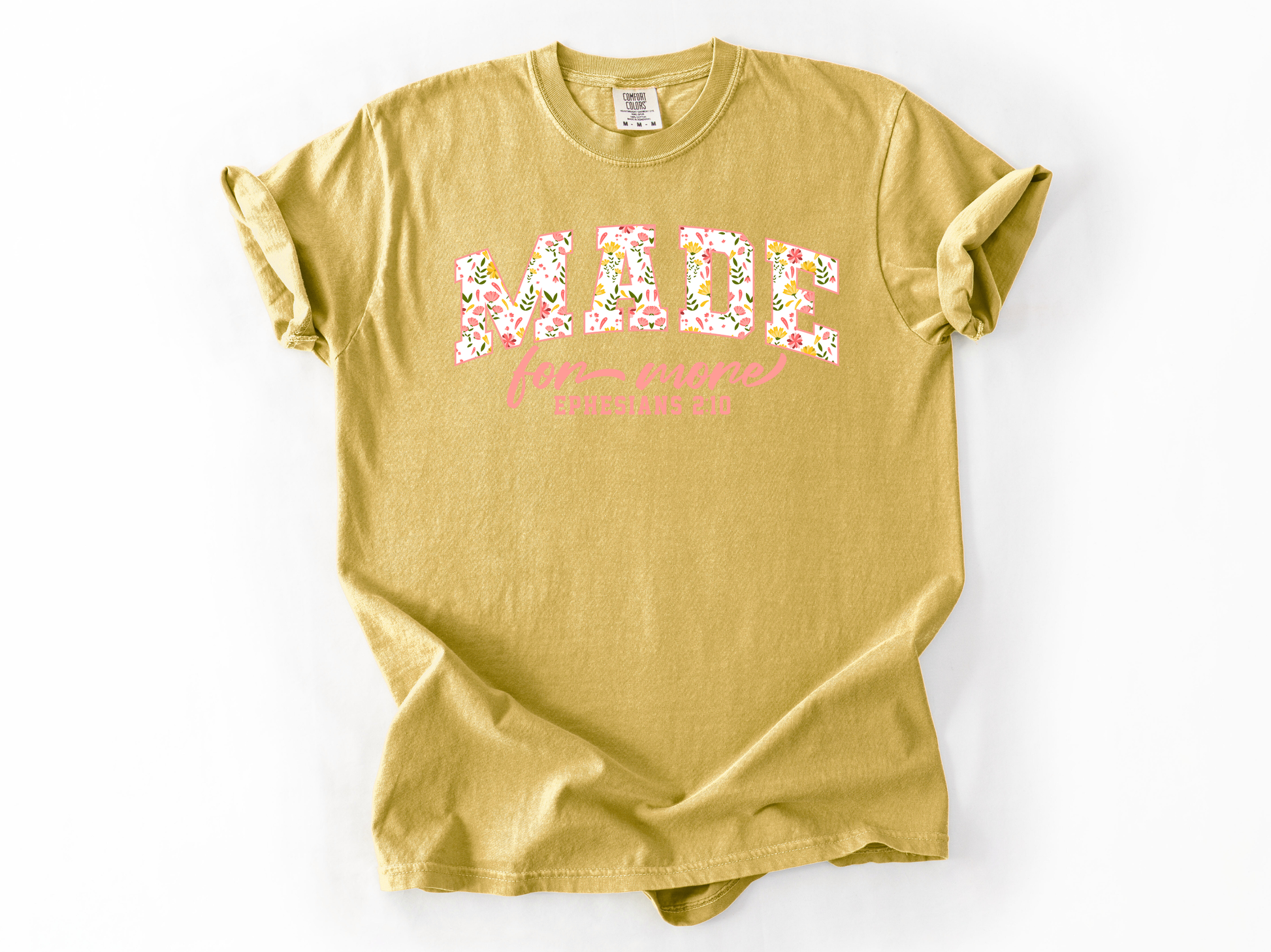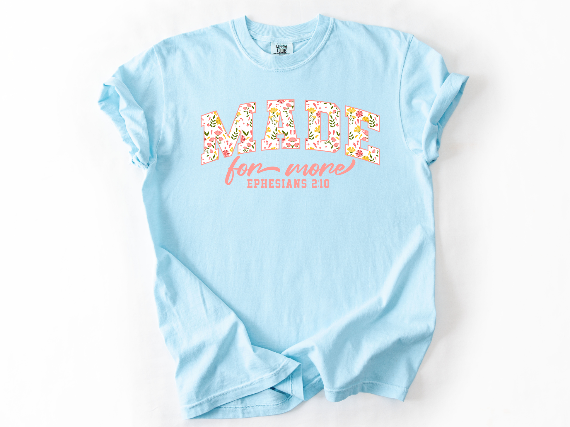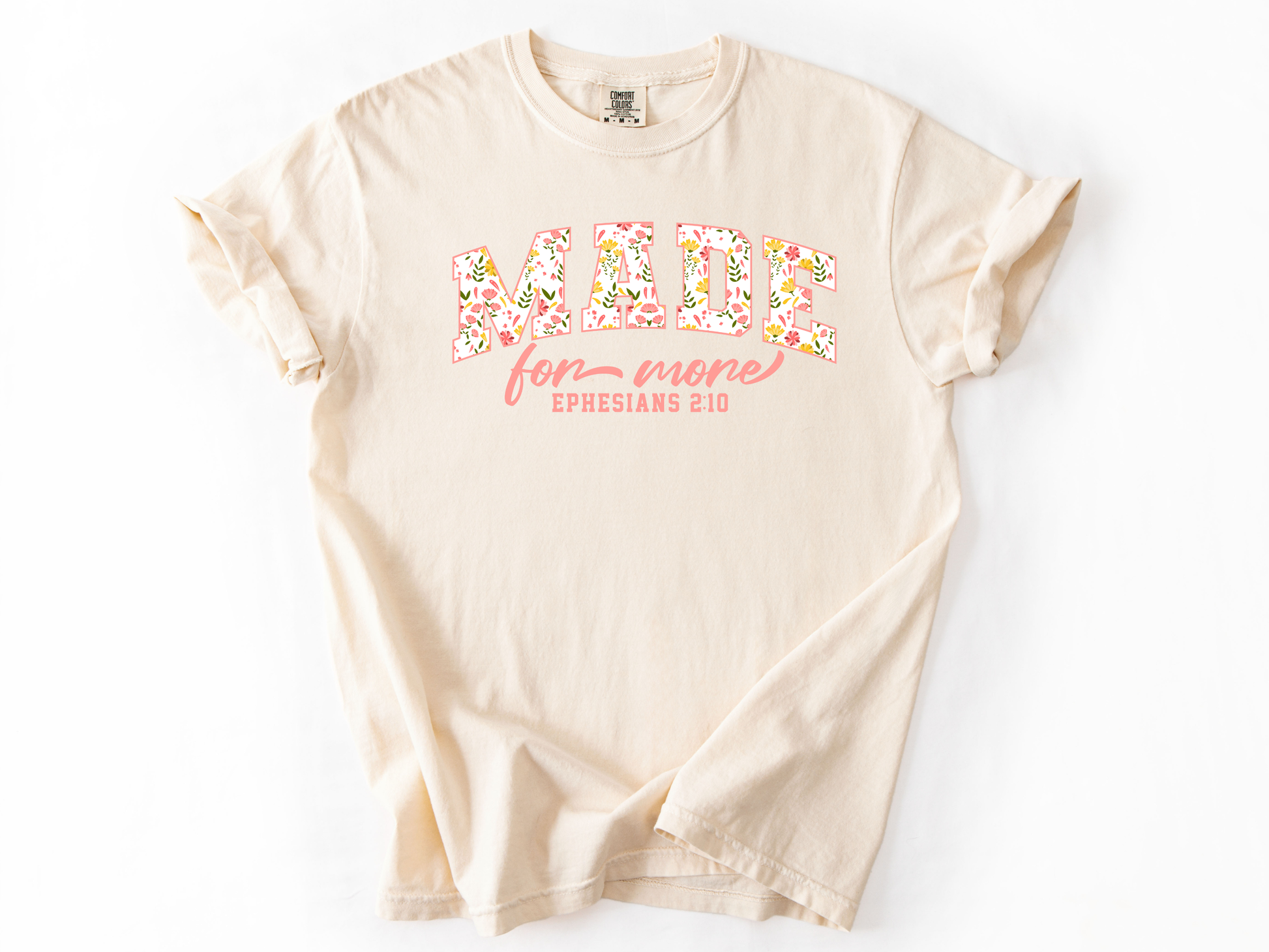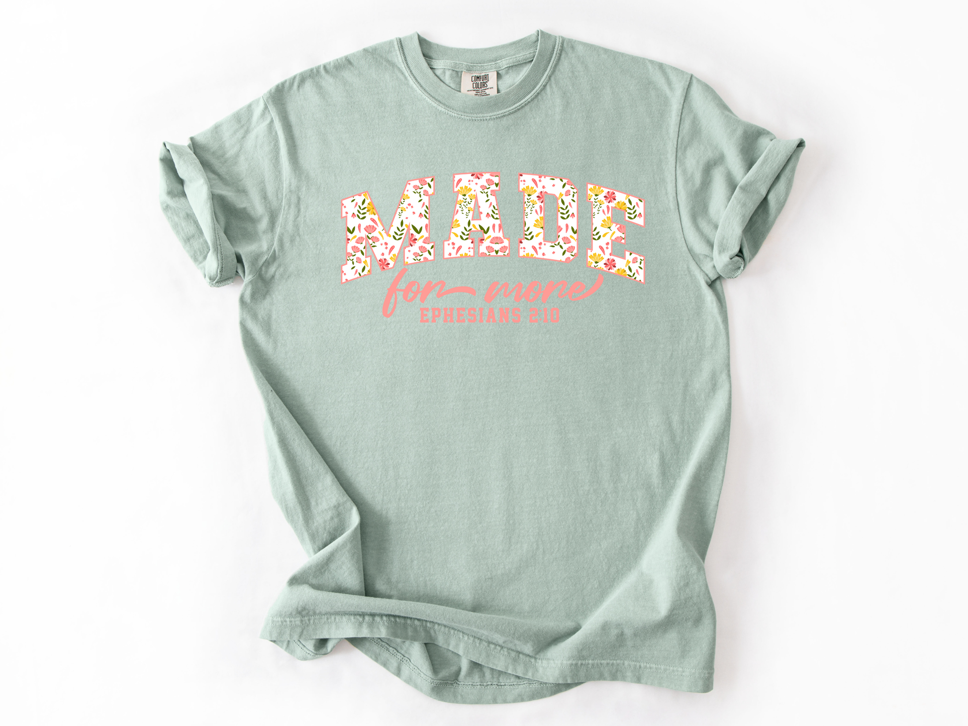 Spread faith and positivity with this “Made for More” Comfort Colors tee inspired by Ephesians 2:10.
