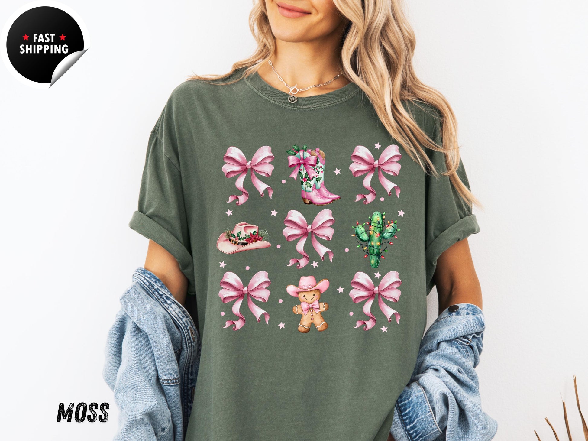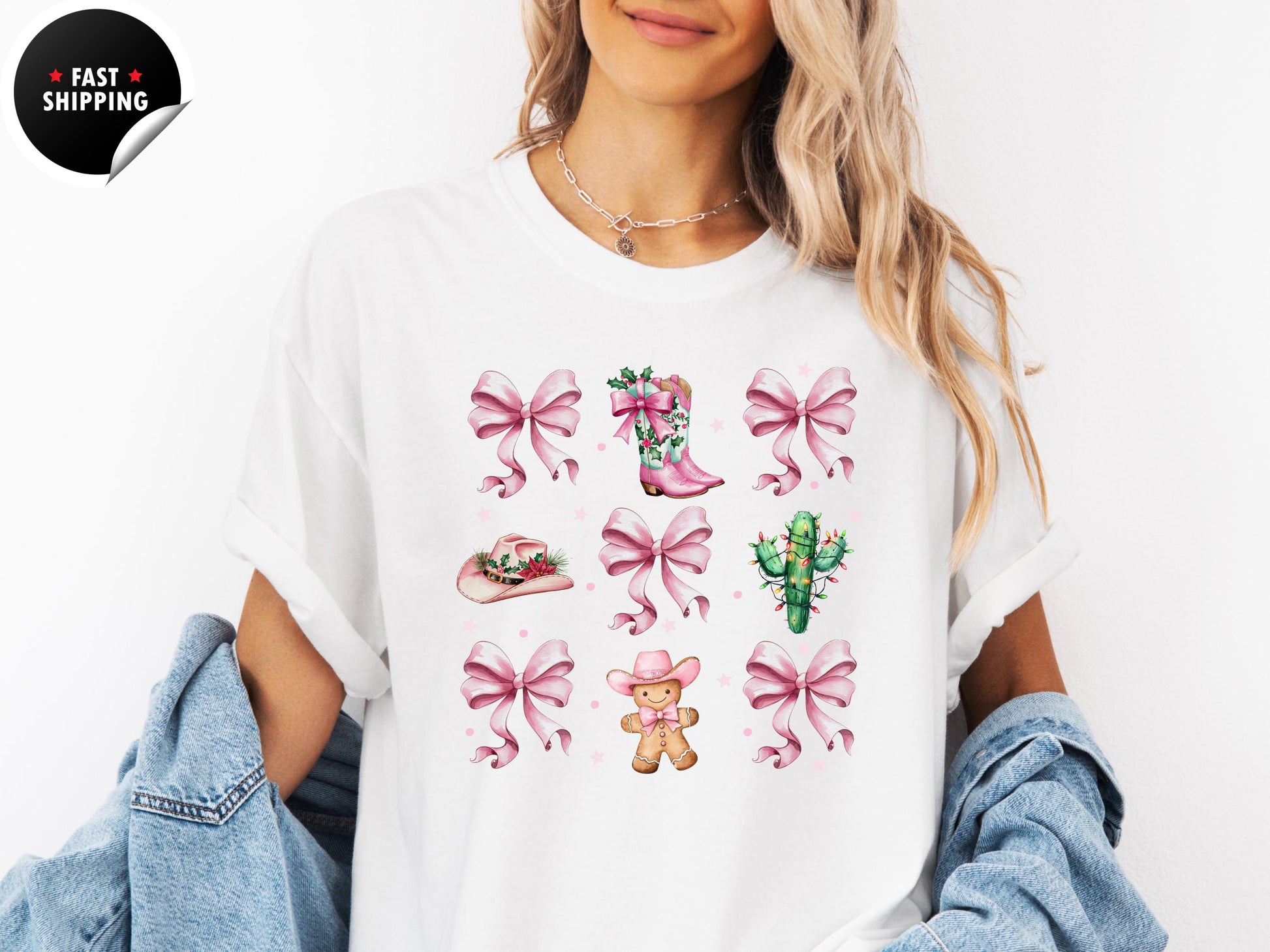 Add a western twist to your holiday style with this cute pink cowboy Christmas shirt 🎄🤠 Perfect for cowgirls at heart, it features festive boots, bows, and a holiday cactus that make it fun and unique. Soft, comfy, and stylish – great for Christmas parties, family gatherings, or as a thoughtful gift.